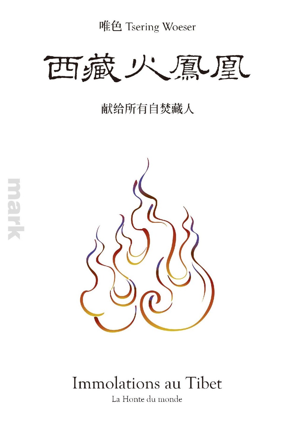 「在有着重要意义的封面设计——所有自焚藏人的名字用藏文记录其上;中间的一朵火焰壮丽,充满奉献的美而非惨烈的苦;洁净的封面宛如西藏洁白的哈达,以献给所有自焚藏人——」